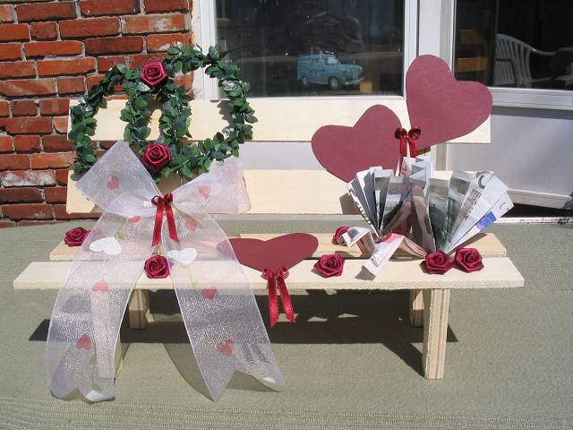 Die Geldgeschenke werden individuell nach Ihren Wünschen gefertigt. Wir verarbeiten das von Ihnen auftragsbezogen zur Verfügung gestellte Geld zu solchen Präsenten für die verschiedenen Feiern, damit man nicht nur den obligatorischen Briefumschlag oder Gutschein übergeben muß .